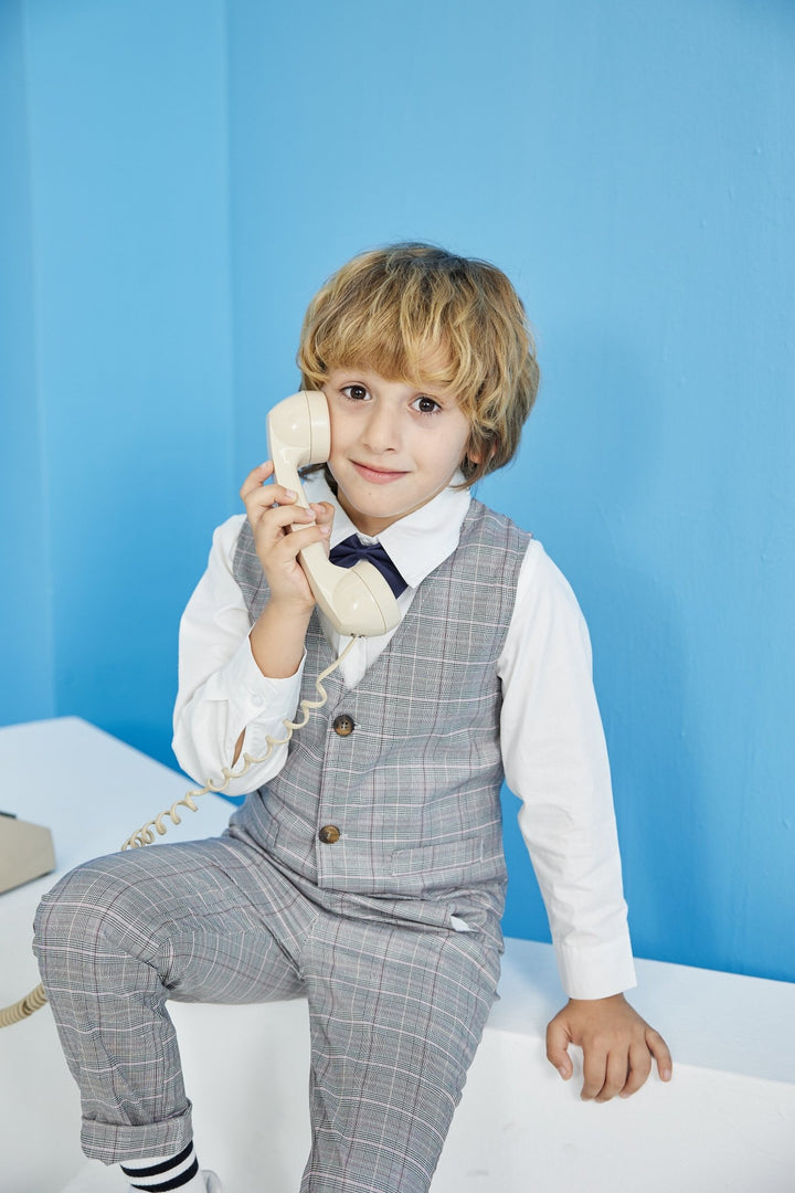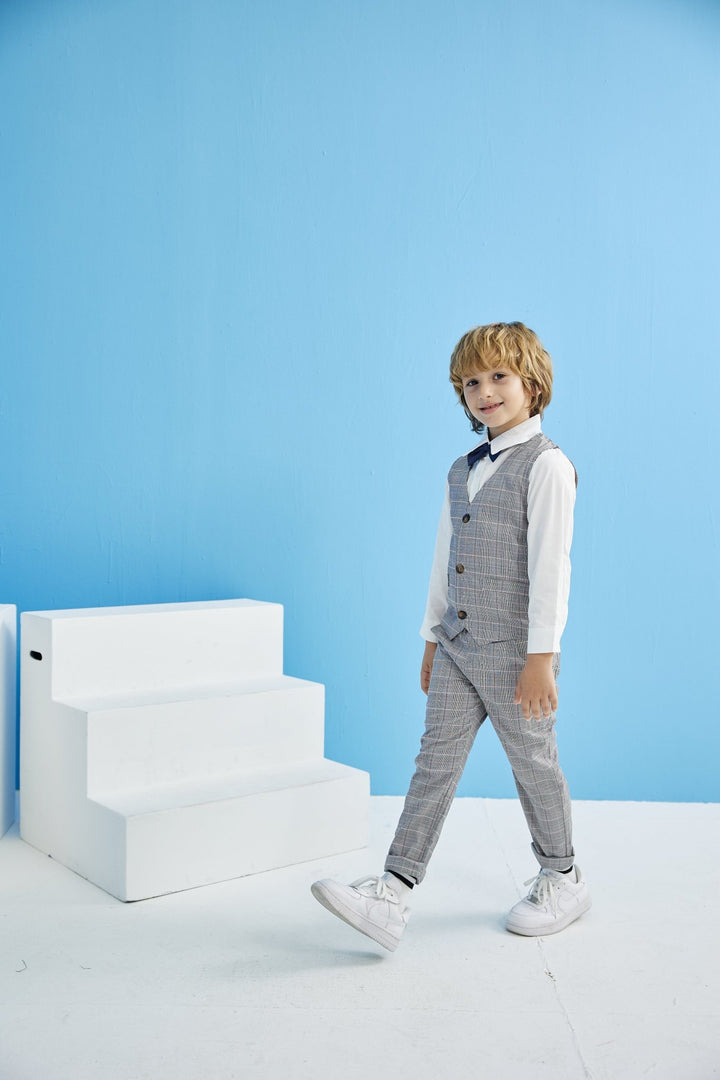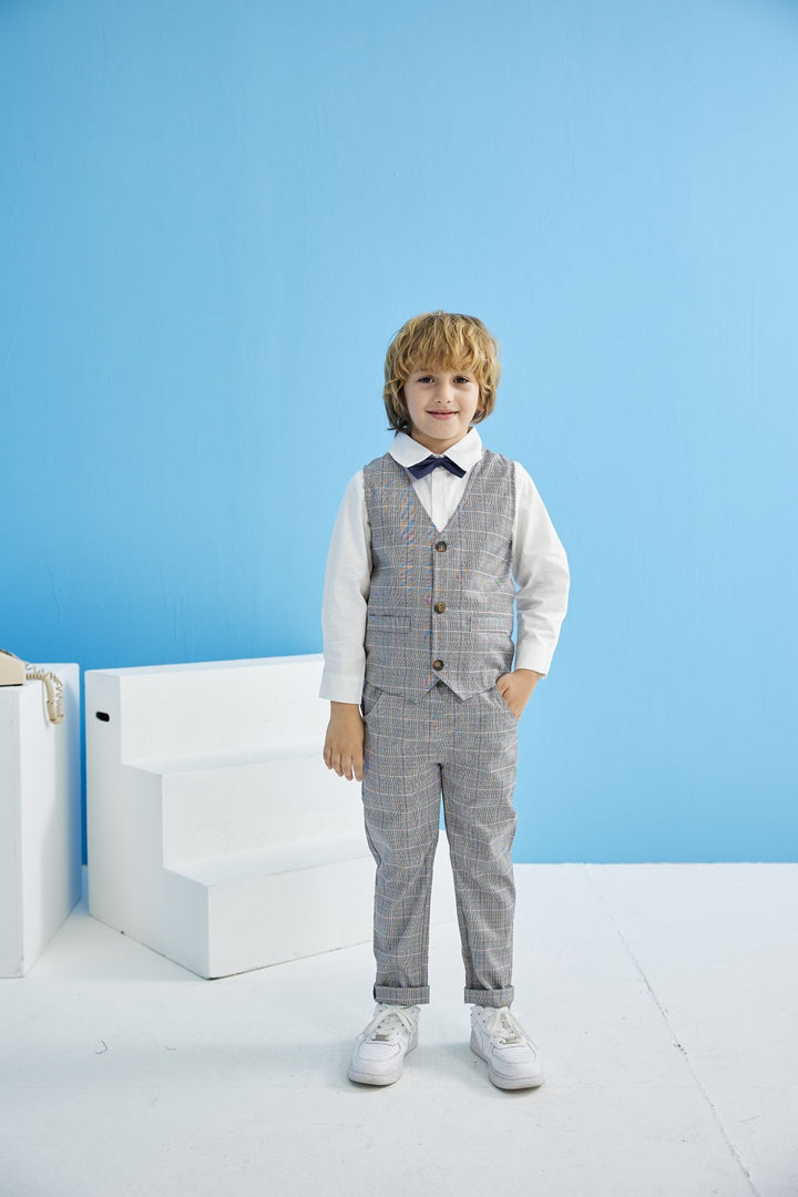 4-Piece Boy Classic Gray Checkered Gentleman Suit (3 Colors)