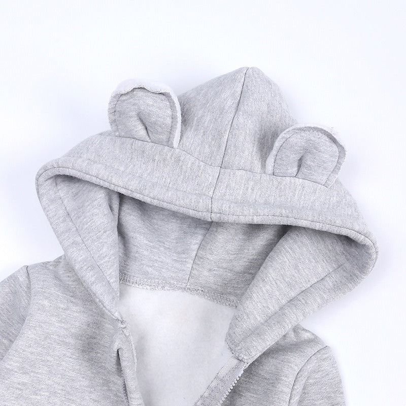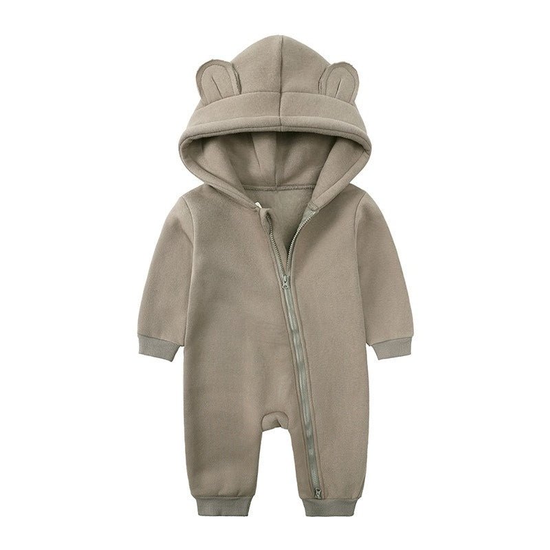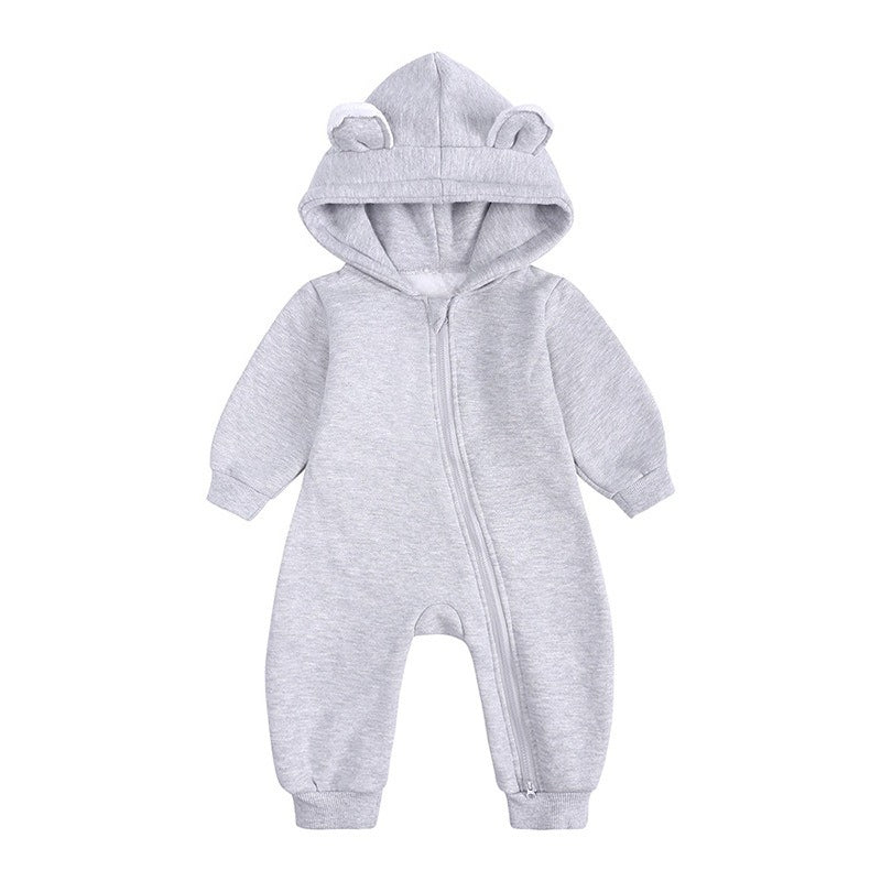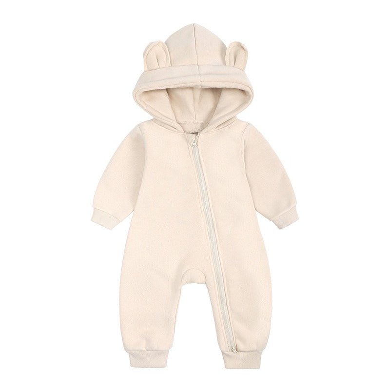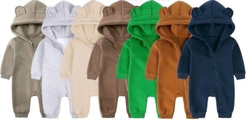 Adorable meets cozy in this charming fall-winter jumpsuit featuring playful 3D bear ears that'll have everyone smiling. Crafted for comfort and style, this one-piece wonder keeps your little one warm while letting their personality shine through. Available in seven delightful colors to match any mood or outfit preference. Perfect for playdates, family gatherings, or snuggling at home. The soft, quality fabric ensures your baby stays comfortable all season long while looking absolutely irresistible.