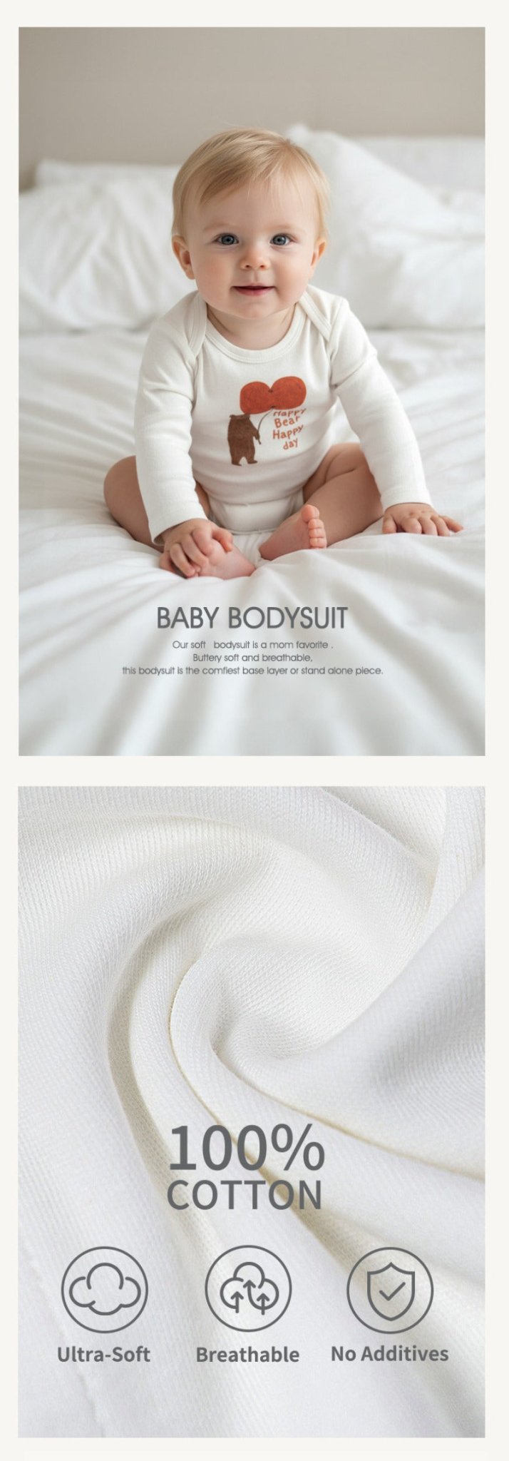 Cuddle up your little one in our adorable animal print bodysuit! Featuring five charming designs—from playful bear to sweet bunny—each bodysuit brings joy and personality to playtime and everyday wear. Crafted with soft, breathable fabric that's gentle on delicate skin, these bodysuits offer comfort babies love and parents trust. Mix and match designs to build a fun wardrobe that grows with your tot. Perfect for layering or wearing solo, these playful pieces are a must-have for any nursery collection.