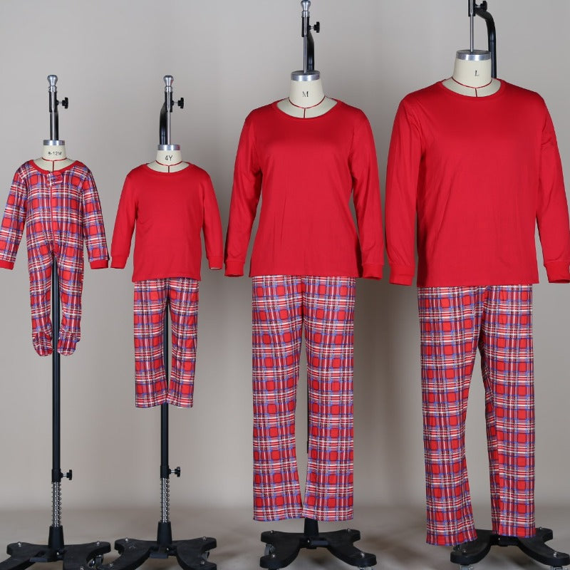 Deck the halls in coordinating style with our Family Matching Christmas Red Color Design Pajama Set! Perfect for creating those picture-perfect holiday moments, this cheerful collection lets everyone—from tiny tots to grown-ups—snuggle up in festive comfort. The vibrant red hue and festive design capture the magic of Christmas morning, while soft, cozy fabric keeps everyone happy through holiday movies and midnight snacks. Whether you're gathering for family photos or just enjoying quality time together, these matching pajamas turn bedtime into a celebration. Make memories that are as warm and wonderful as the pajamas themselves!
