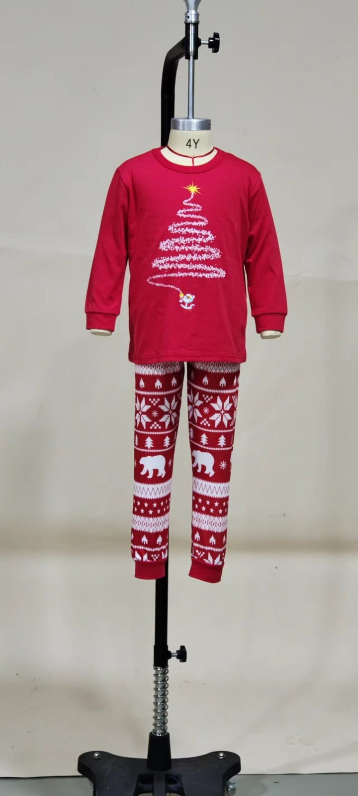 Family Matching Starlight Christmas Tree Print Design Red Pajama