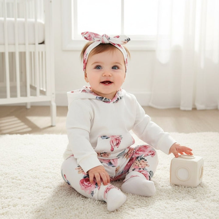 Baby Girl Floral Hoodie, Pants and Headband Set