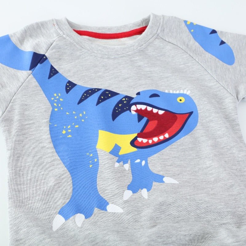 Toddler/Kid Boy Blue Dinosaur Print Design Gray Sweatshirt