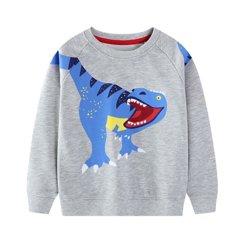 This gray sweatshirt features a fun blue dinosaur print, perfect for energetic toddlers and kids. Crafted with soft, cozy fabric, it keeps little adventurers warm and comfortable during playtime or outings. The playful design adds a charming touch to everyday wear, making it a favorite in your child’s wardrobe.