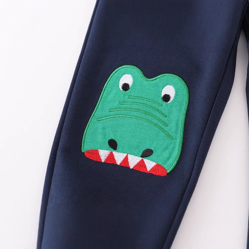 Let your little dino lover stomp around in style! These adorable green dinosaur embroidery pants feature a fun cartoon design that'll have kids grinning from ear to ear. Crafted for comfort and durability, they're perfect for playdates, casual outings, or everyday adventures. The playful embroidered details add personality to any outfit, while the soft fabric keeps your toddler or kid feeling cozy all day long. A roaring good choice for any young dinosaur enthusiast!