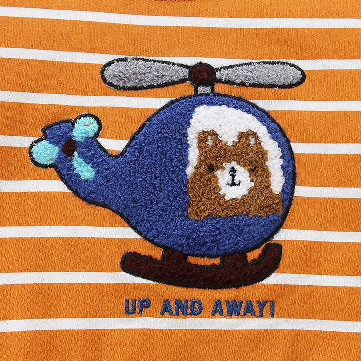 This cozy cotton sweatshirt features a fun helicopter embroidery that’s perfect for adventurous toddler and kid boys. Soft and breathable, it keeps your little pilot comfy while sparking imagination and play. An ideal choice for everyday wear filled with charm and playful spirit.