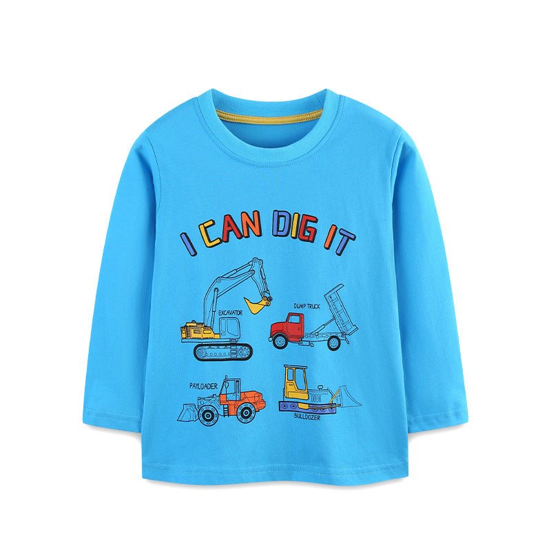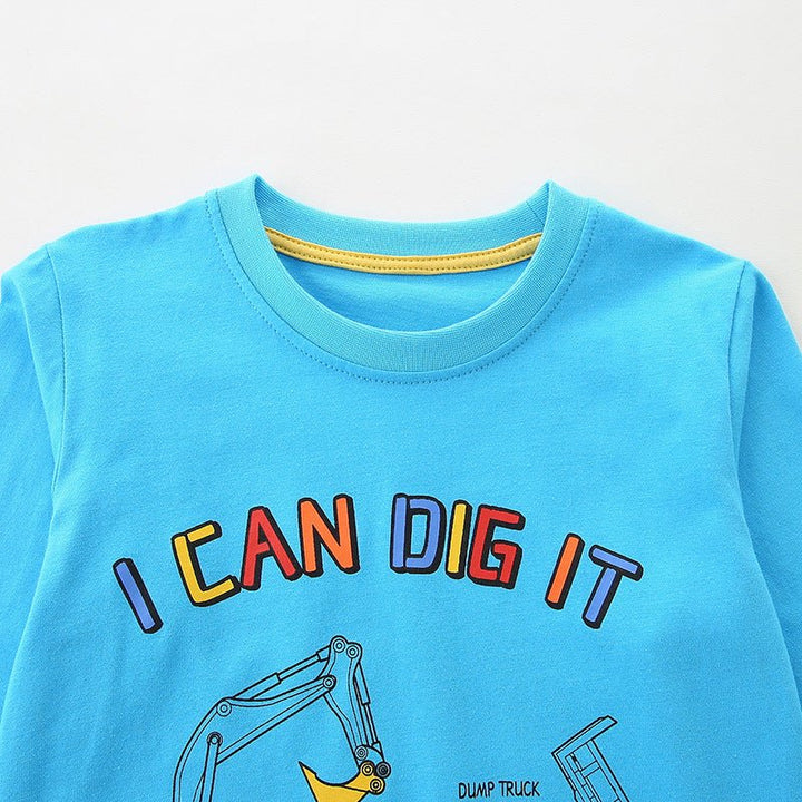 Toddler/Kid Boy Long Sleeve " I Can Dig It " Print Design Blue T-shirt