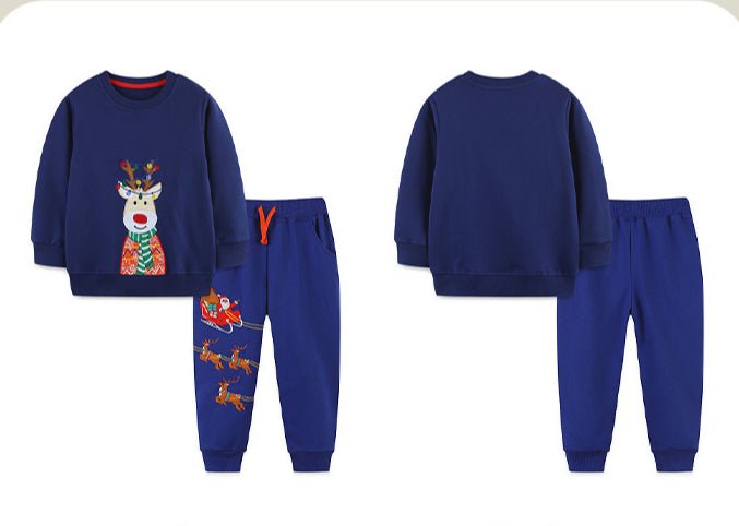 Toddler/Kid Boy Santa's Reindeer Embroidery Design Sweatshirt and Pants Set