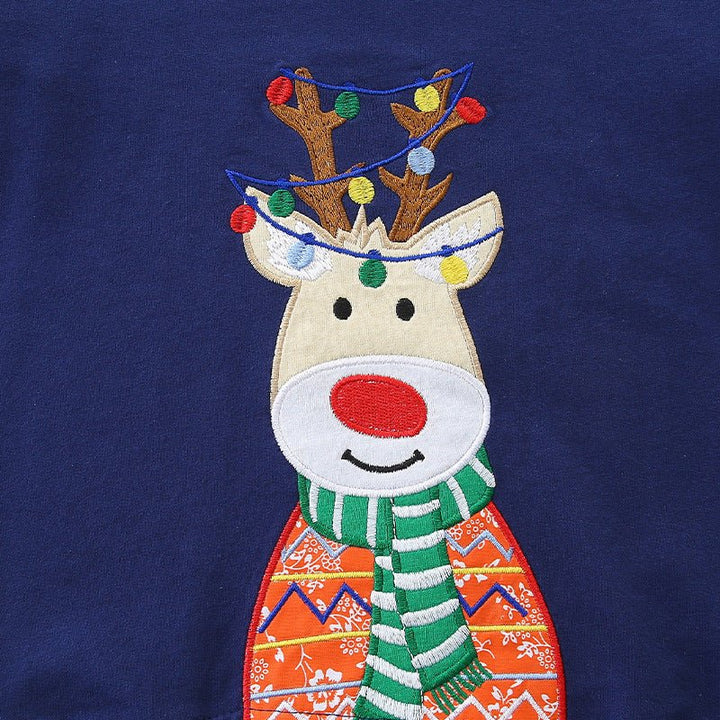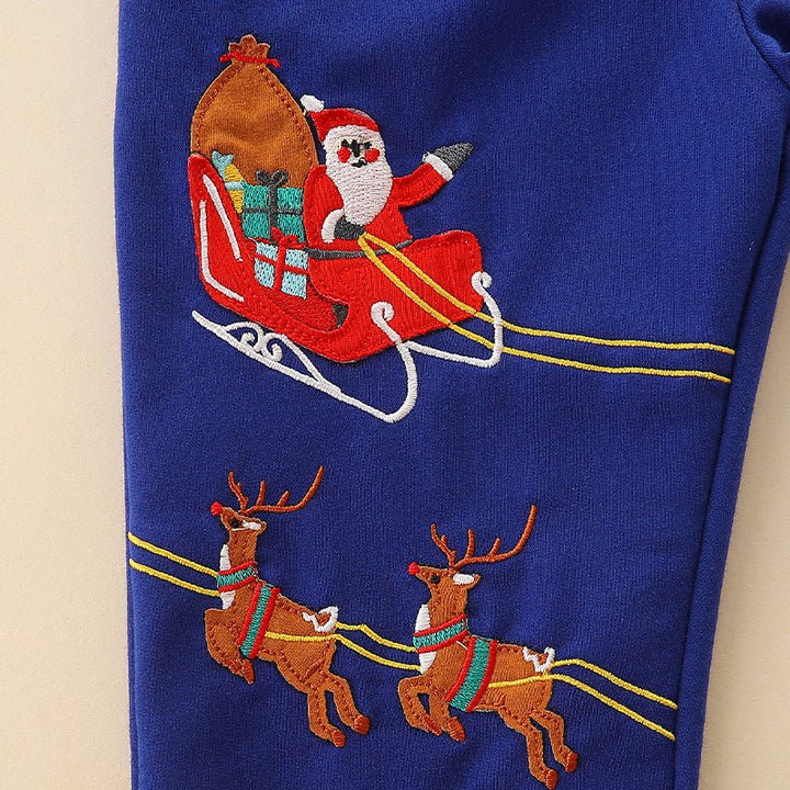 Get your little one holiday-ready with this playful sweatshirt and pants set featuring Santa’s reindeer embroidery. Soft and cozy, it’s perfect for keeping toddlers and kids comfortable during festive fun and winter adventures. Easy to wear and full of holiday cheer!