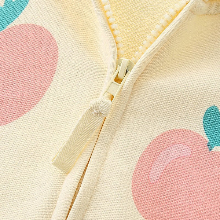 This lively jacket for toddler and kid girls features a charming apple print that adds a dash of fun to any outfit. Designed for comfort and ease, it’s perfect for playtime adventures or cozy days out. The lightweight fabric keeps her warm without weighing her down, making it an ideal choice for active little ones who love to explore.