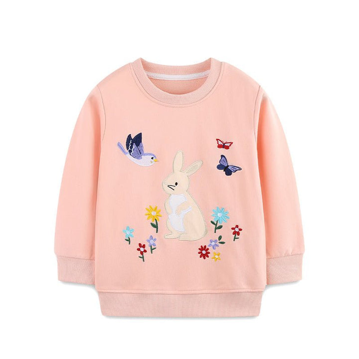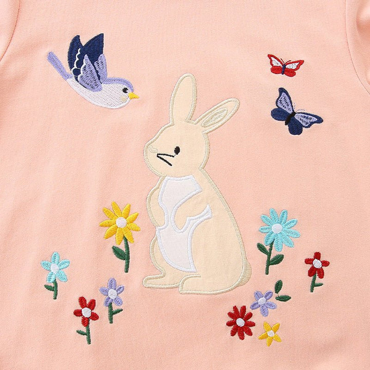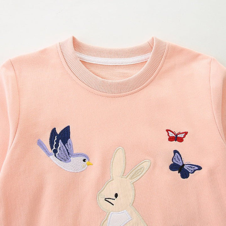 Toddler/Kid Girl Bird and Rabbit Embroidery Design Pink Sweatshirt
