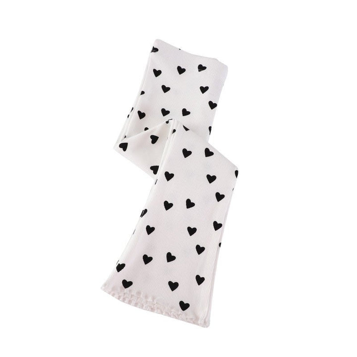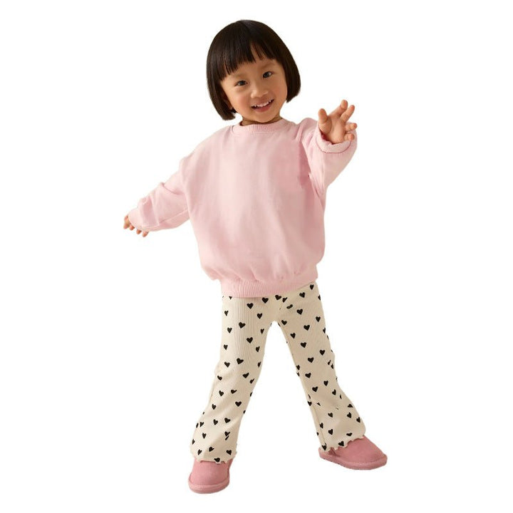 These black leggings featuring cute small heart print are perfect for your toddler or kid girl. Soft and stretchy, they offer all-day comfort and freedom to play, making every move fun and easy. Add a sweet touch to her everyday outfits with this playful, heart-adorned favorite.