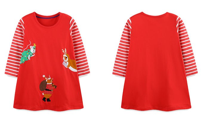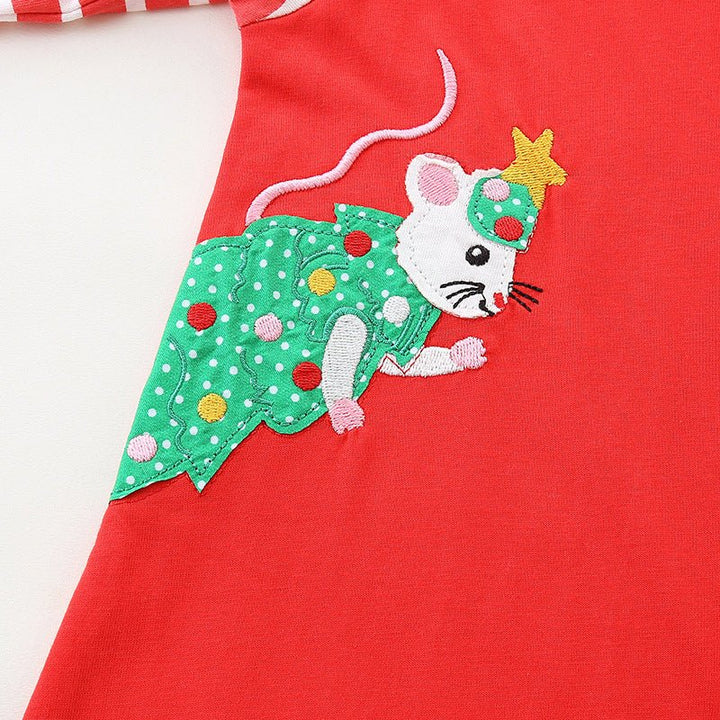 This charming dress features adorable mice embroidery with a festive Christmas design, perfect for your little girl's holiday celebrations. Crafted for comfort and style, it’s ideal for toddlers and kids who love to sparkle with seasonal cheer. Let your child twirl into the holiday spirit with this playful and cozy dress!