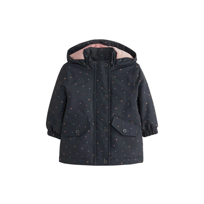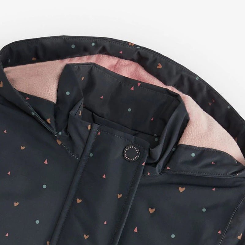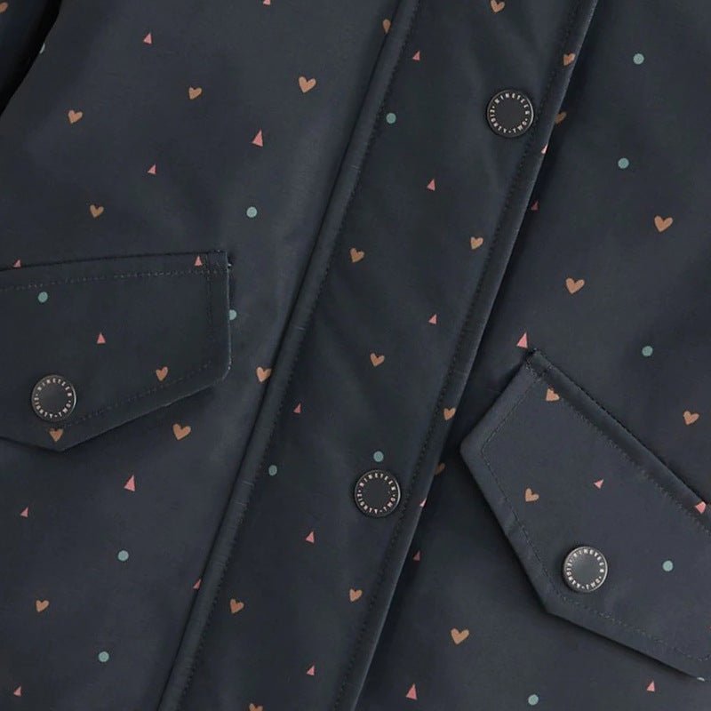 Wrap your little one in cozy comfort with this delightful heart print coat! Featuring a vibrant rainbow of colorful hearts, this playful jacket brings joy to everyday adventures. Perfect for toddlers and kids who love expressing their personality, the cheerful design makes getting dressed fun. The soft, durable fabric keeps her warm through chilly days while the charming heart pattern adds a touch of whimsy to any outfit. An essential piece for building a colorful, confident wardrobe!