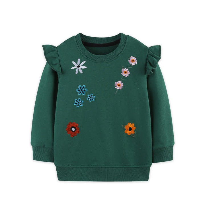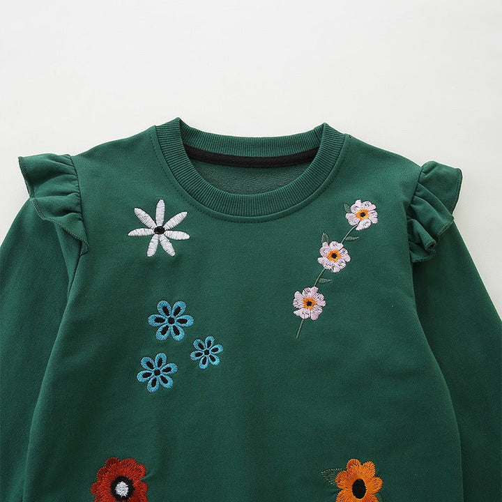 Toddler/Kid Girl Colourful Flowers Embroidery Design Dark Green Sweatshirt
