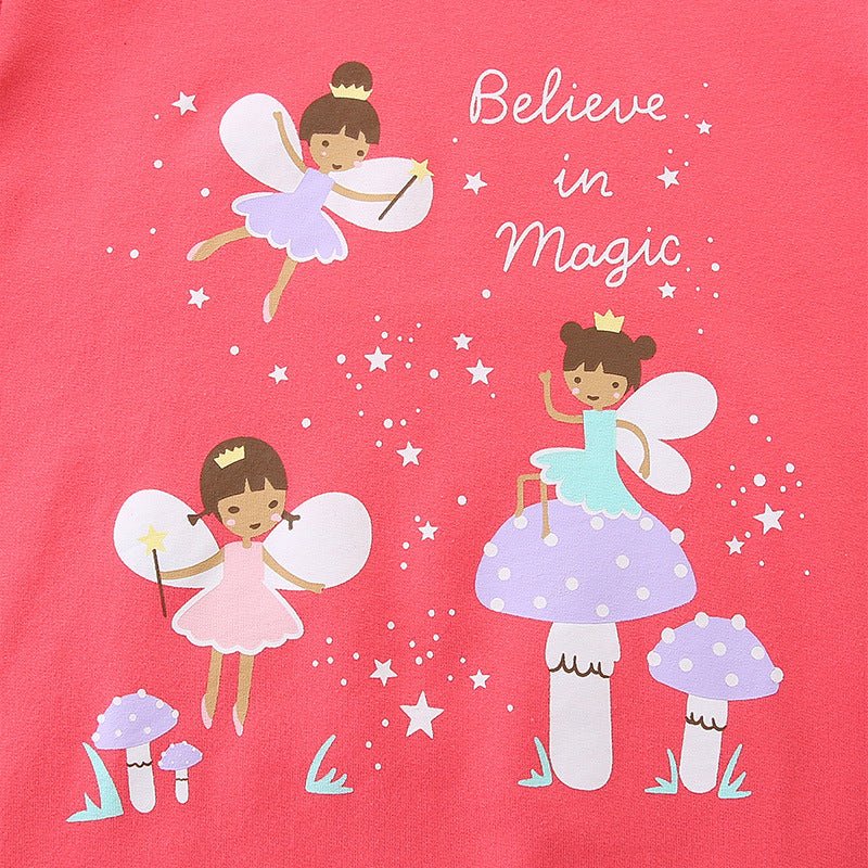 This adorable pink sweatshirt features a charming little fairy print, perfect for your toddler or kid girl who loves a touch of magic. Soft and cozy, it keeps her warm while sparking imagination and playfulness throughout the day. Ideal for casual outings or cozy days at home, this sweatshirt brings comfort and fun together in one delightful package.