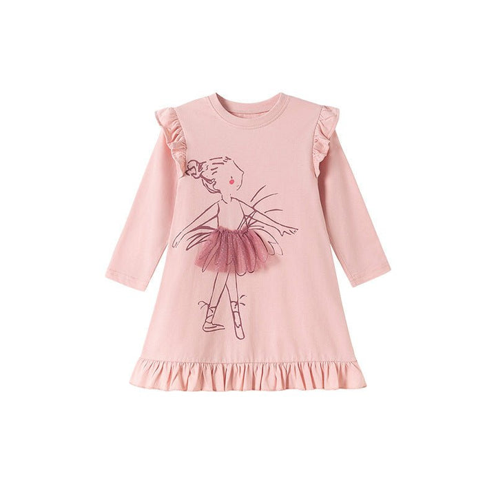 Toddler/Kid Girl Long Sleeve Ballet Girl Print Design Pink Dress