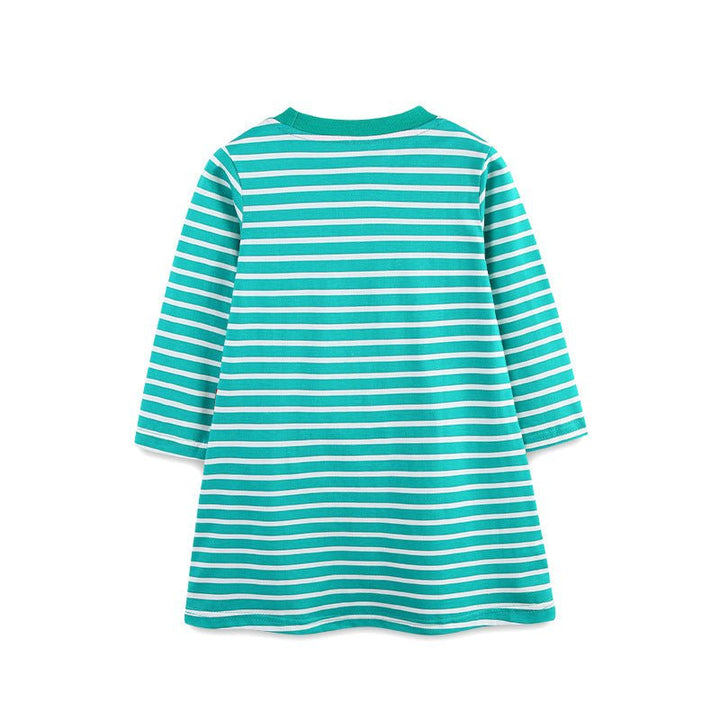 This adorable green dress features a playful bird design and convenient front pockets, perfect for your little explorer. With long sleeves to keep her cozy, this dress combines comfort and charm for everyday adventures. Bright and cute, it’s sure to become a favorite in her wardrobe!
