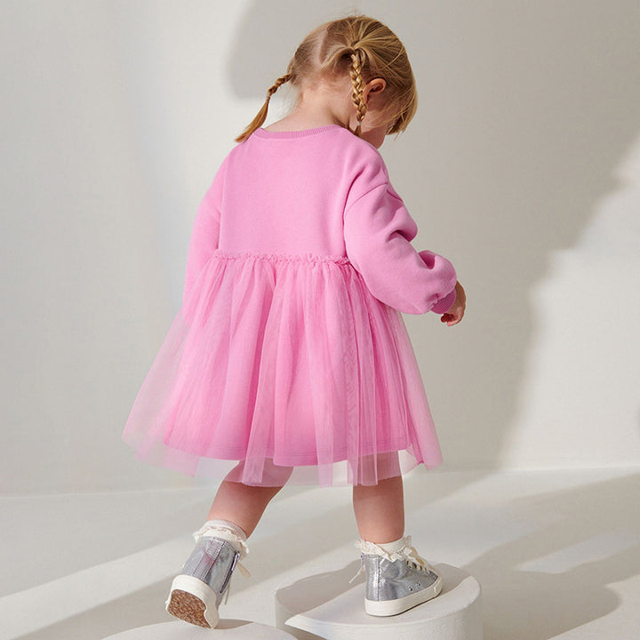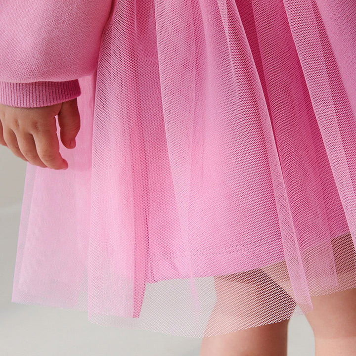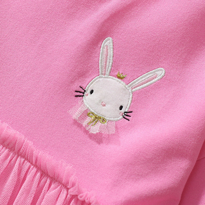 This charming pink princess dress is perfect for your little girl's everyday adventures and special moments. Featuring long sleeves and a delightful bunny embroidery, it combines comfort with whimsical style. The soft fabric keeps her cozy while she twirls and plays, making it a go-to favorite for any playful princess.