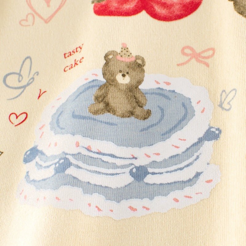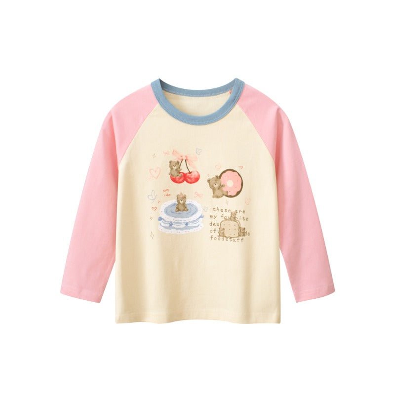 Meet your little one's new favorite top! This charming long-sleeve tee features an adorable cartoon bear clutching a delicious cake—a design that sparks joy and imagination. Crafted for comfort and durability, it's perfect for everyday adventures, playdates, or cozy days at home. The soft fabric keeps her warm while the whimsical print lets her personality shine. A delightful addition to any toddler or kid's wardrobe that celebrates sweetness and fun!
