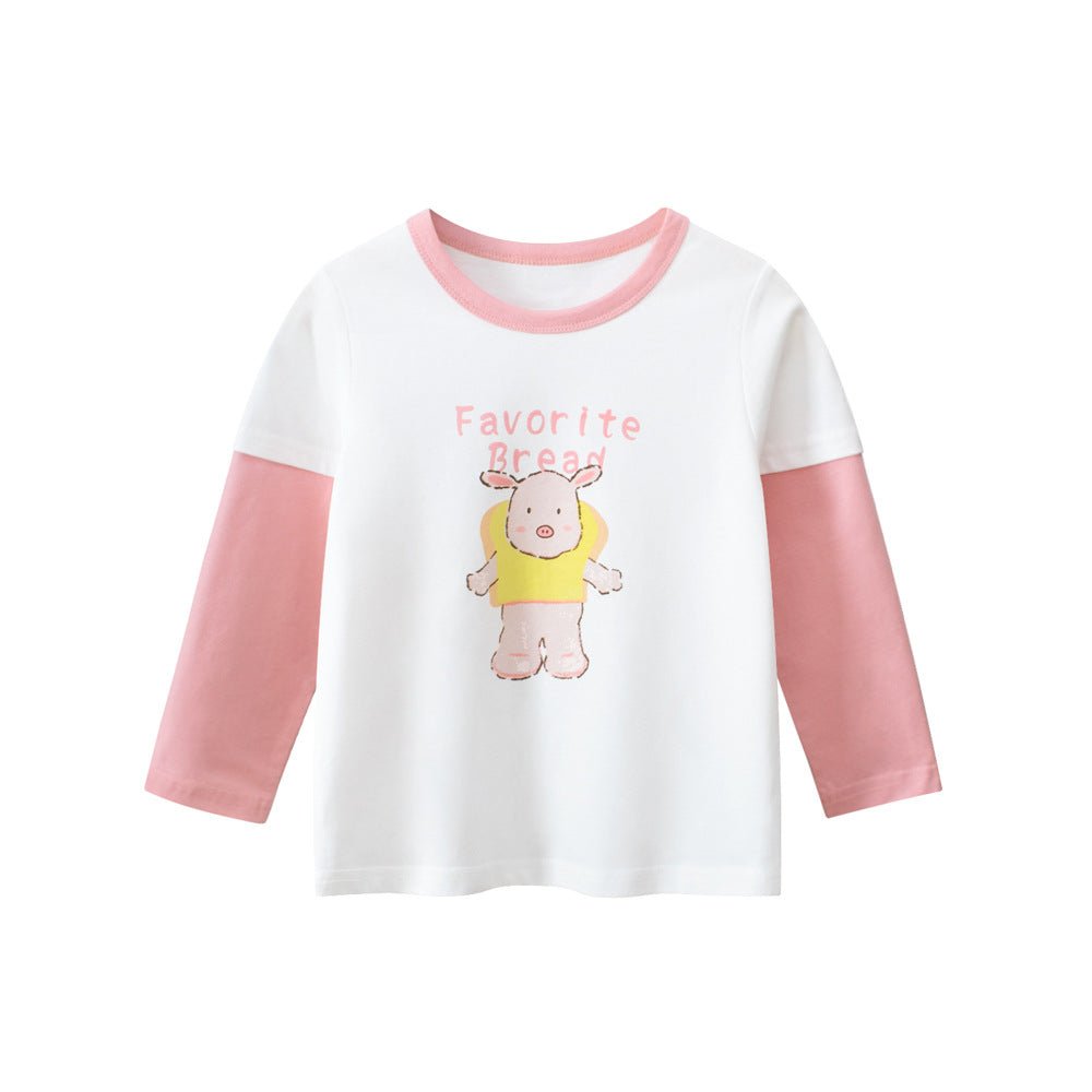 Toddler/Kid Girl Long Sleeve Cartoon Pig and Bread Print Design T-Shirt