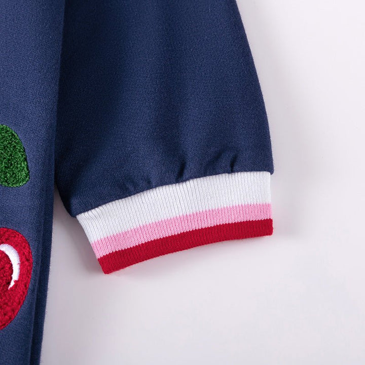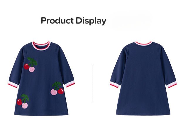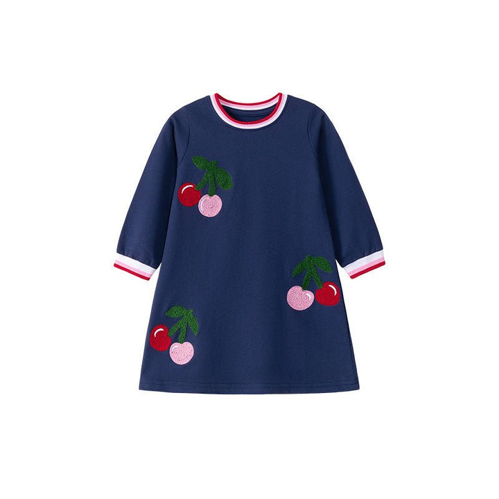 This charming long sleeve dress features delightful cherry embroidery, perfect for your little girl's playful days. Crafted for comfort and style, it keeps her cozy while adding a sweet, fruity touch to her wardrobe. Ideal for toddlers and kids who love to twirl and explore with a splash of fun!