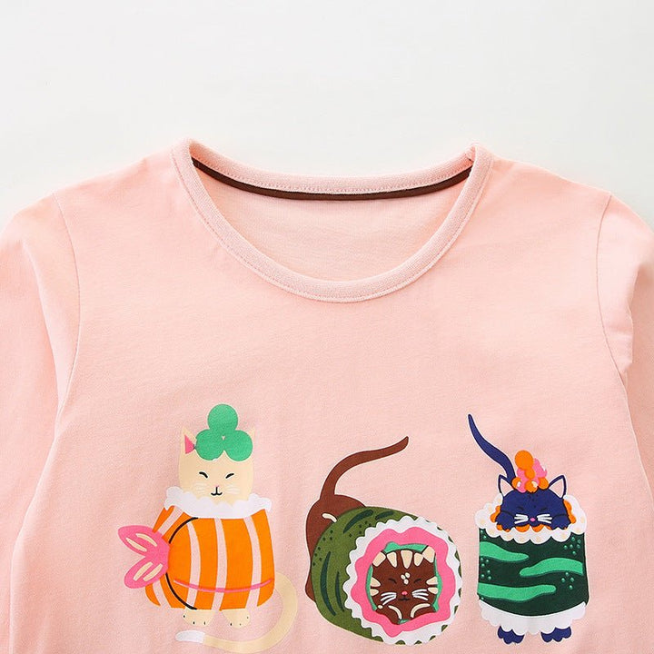 Toddler/Kid Girl Long Sleeve Cute Kitten Print Design Pink T-Shirt