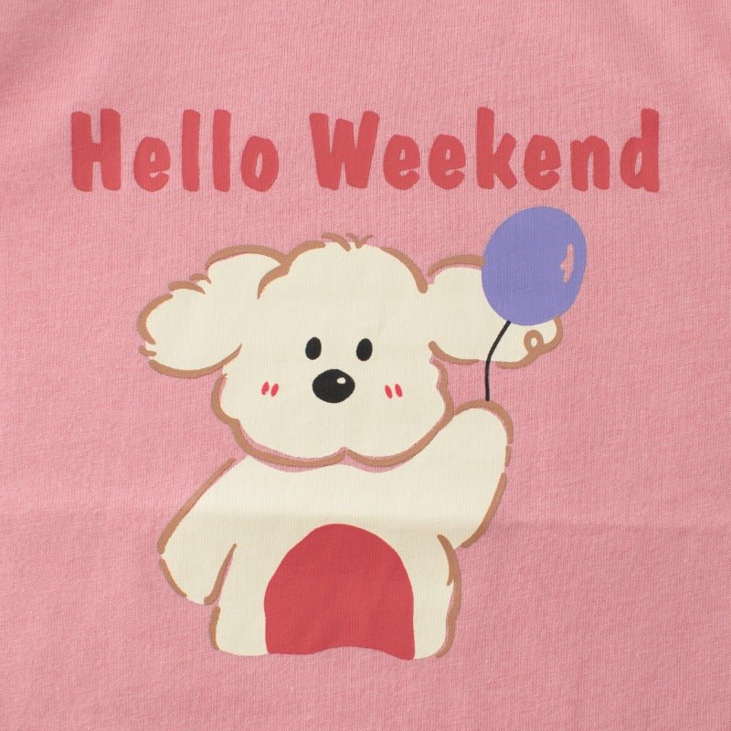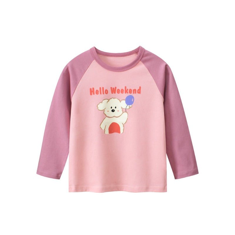 Toddler/Kid Girl Long Sleeve "Hello, Weekend" Print Design Pink T-Shirt