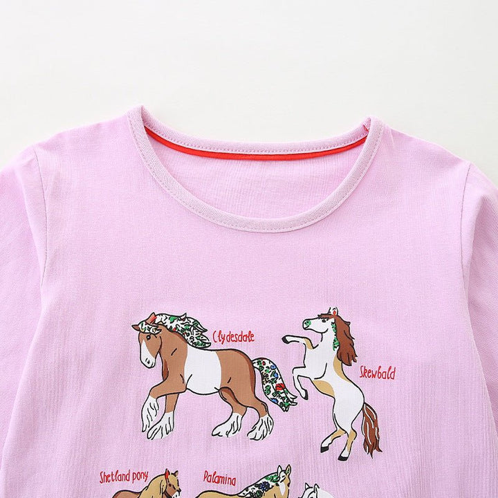 Toddler/Kid Girl Long Sleeve Horses Print Design Purple T-Shirt
