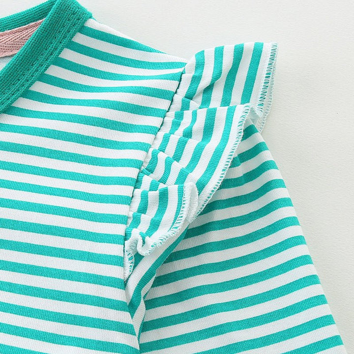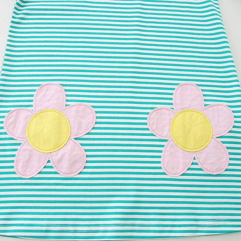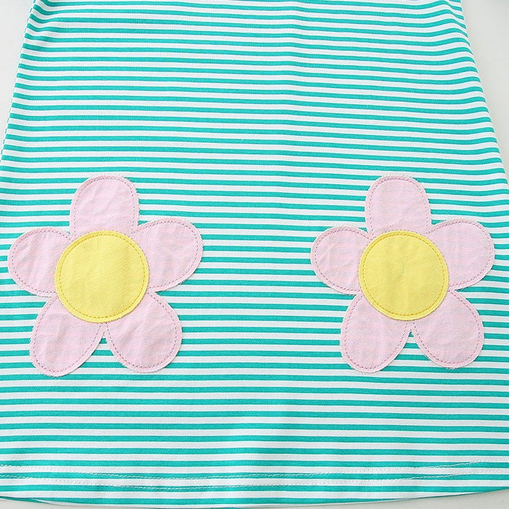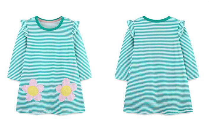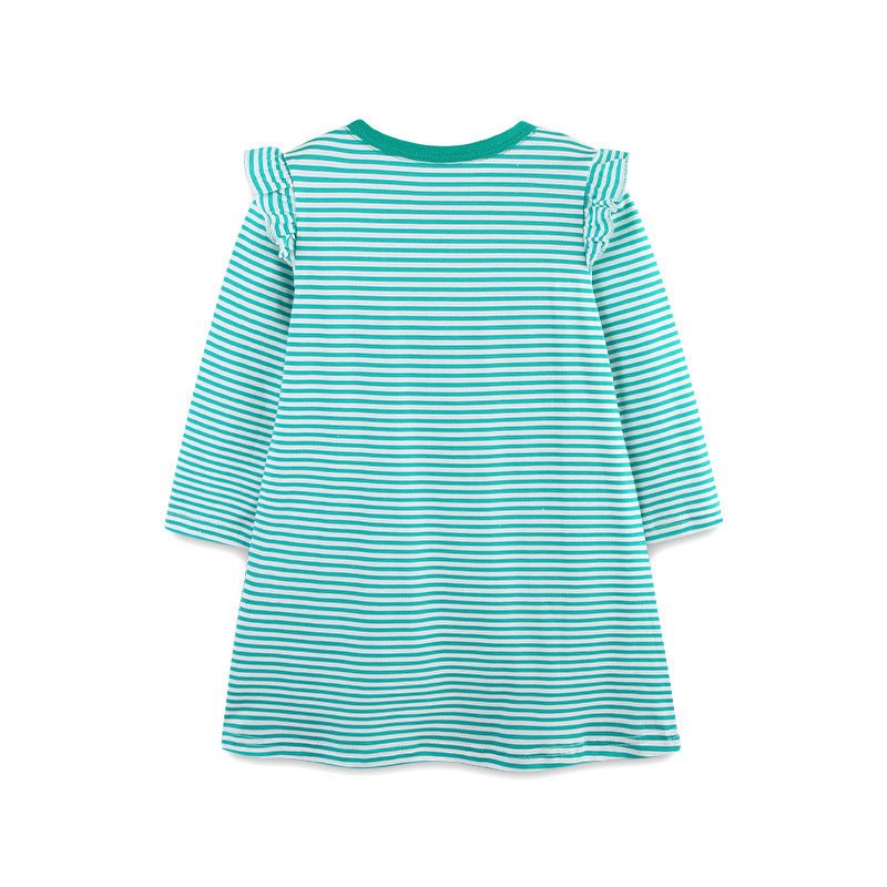 This charming green striped dress features delicate pink floral embroidery and long sleeves, perfect for your little girl's playful adventures. Soft and comfortable, it combines style and ease, making it an ideal choice for everyday fun or special occasions.