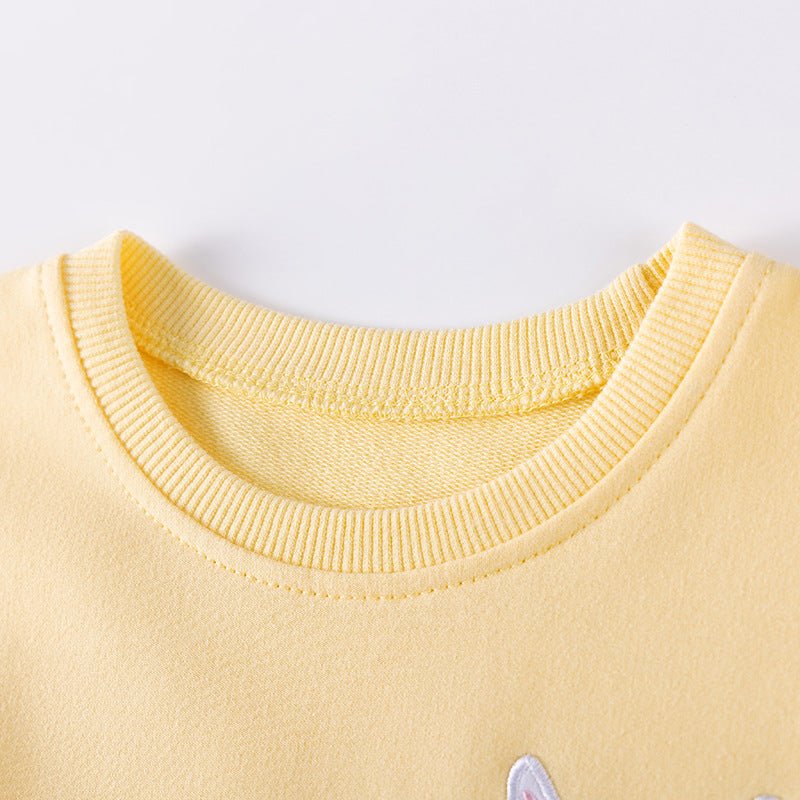 This cheerful yellow dress is perfect for your little princess! Featuring adorable bunny embroidery and long sleeves, it keeps your toddler cozy while adding a touch of whimsy to her day. Comfortable and cute, it’s ideal for playdates, parties, or any adventure that calls for a splash of sunshine and fun.