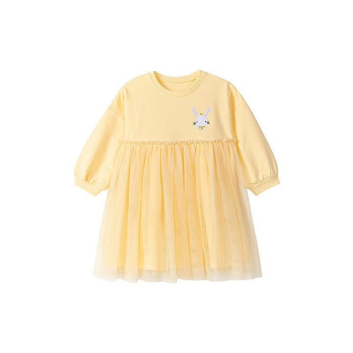 Toddler/Kid Girl Long Sleeve Princess Bunny Embroidery Yellow Dress