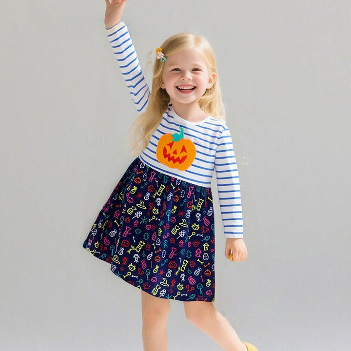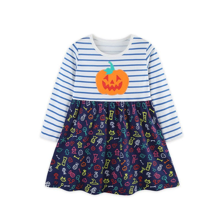 Toddler/Kid Girl Long Sleeve Pumpkin Embroidery Dress