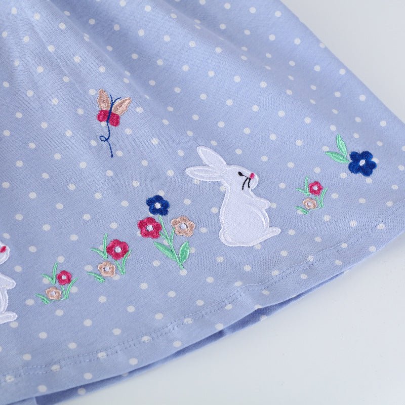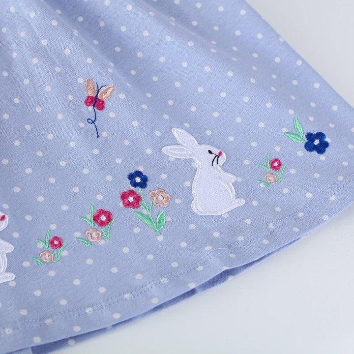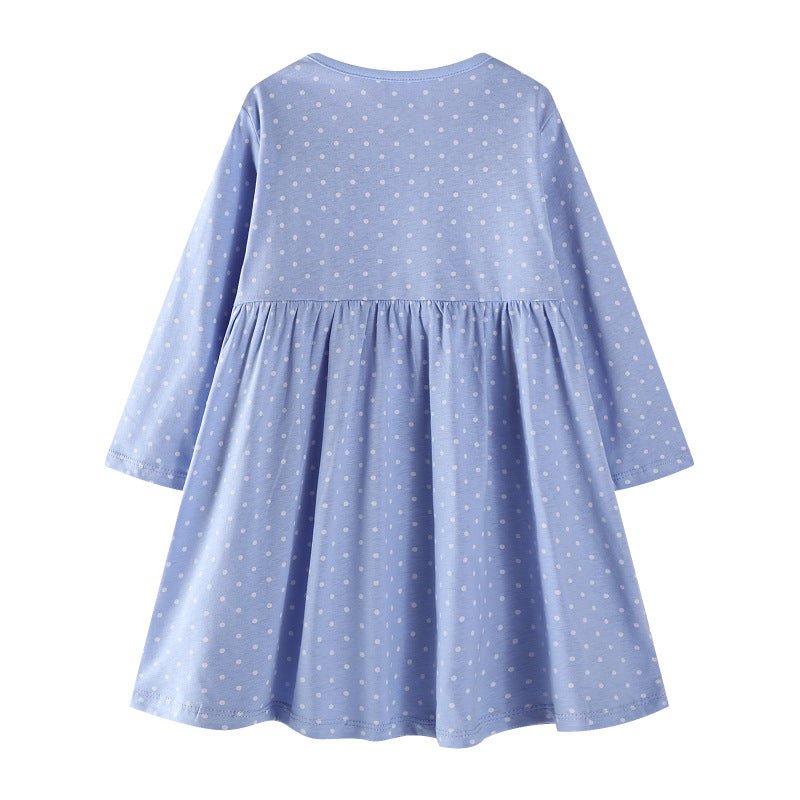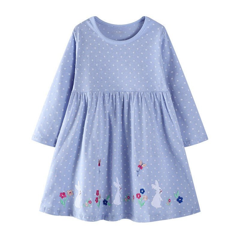 Dress your little one in charm with this light blue long sleeve dress featuring a delightful rabbit embroidery. Soft and comfortable, it’s perfect for playful days and cozy evenings. The cute design adds a touch of whimsy, making it a sweet choice for any toddler or kid girl who loves fun and comfort.