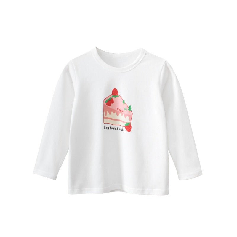 Sweet and stylish, this long-sleeve tee features an adorable strawberry cake print that'll have your little one smiling all day long. Crafted from soft, comfortable fabric, it's perfect for playdates, casual outings, or cozy days at home. The cheerful design brings a pop of fun to any outfit, while the durable construction means it'll keep looking great through countless washes and adventures. A delightful wardrobe essential for girls who love all things sweet!