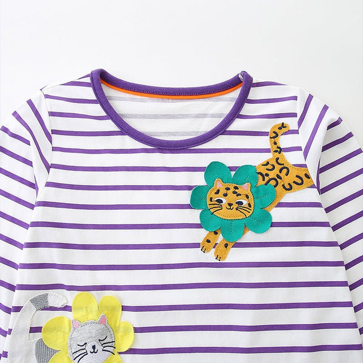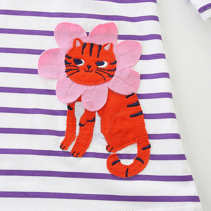 Dress your little one in adorable charm with this purple long-sleeve dress featuring a delightful three cats embroidery. Designed for toddlers and kids, its soft fabric keeps her cozy while the playful cat details add a fun touch perfect for everyday adventures or special outings. Comfortable, cute, and colorful—this dress brings joy to every moment.
