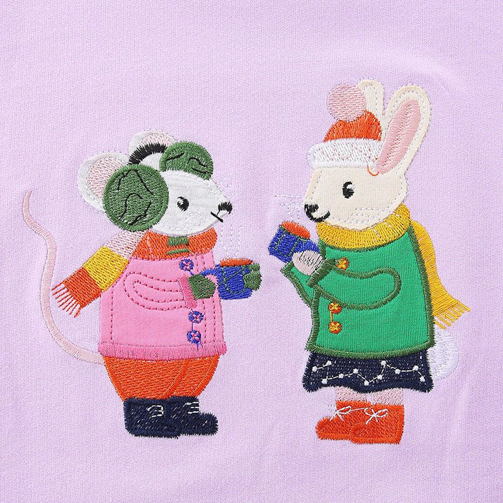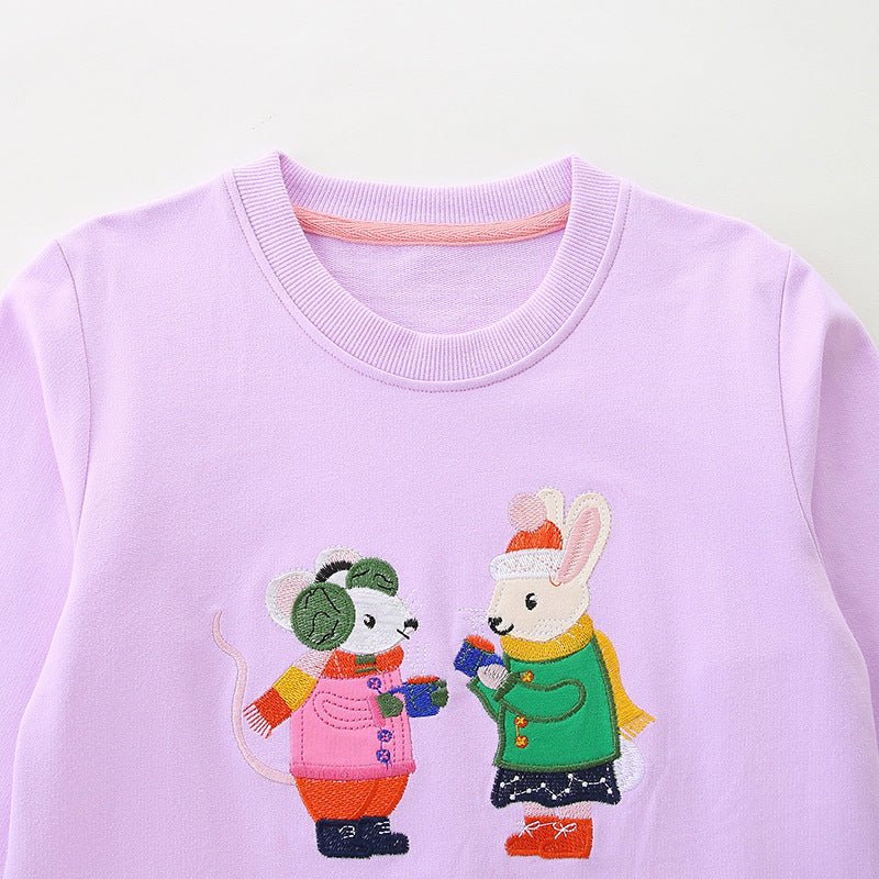 This cozy purple sweatshirt features an adorable mice embroidery design perfect for your little girl's playful days. Soft and comfortable, it keeps toddlers warm while inspiring imagination and fun. Easy to wear and care for, it’s a charming addition to any kid's wardrobe.