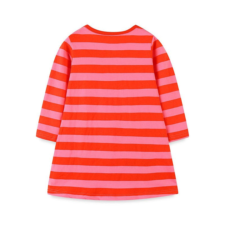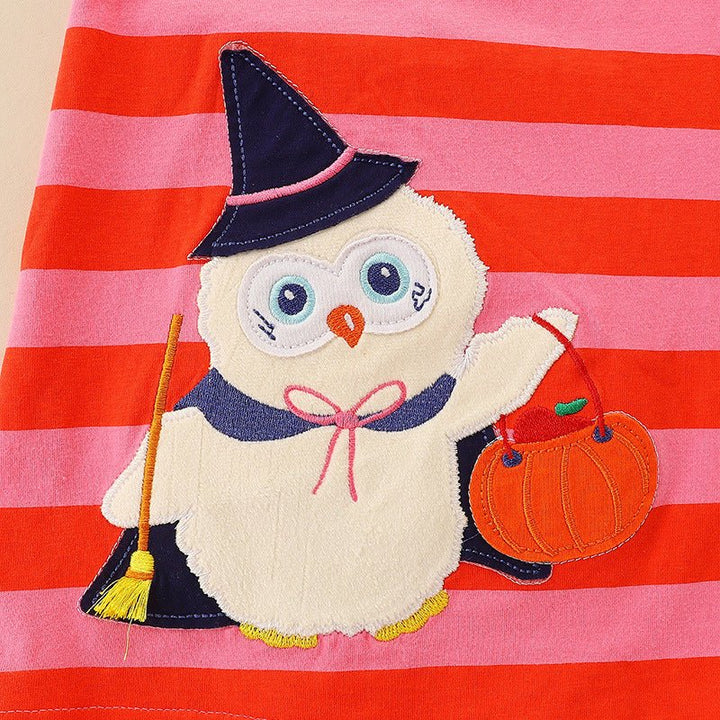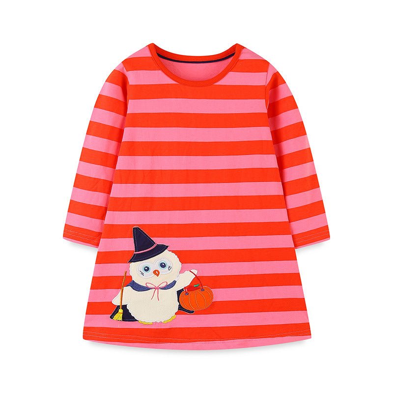 Toddler/Kid Girl Owl Wizard Embroidery Stripes Long Sleeve Dress