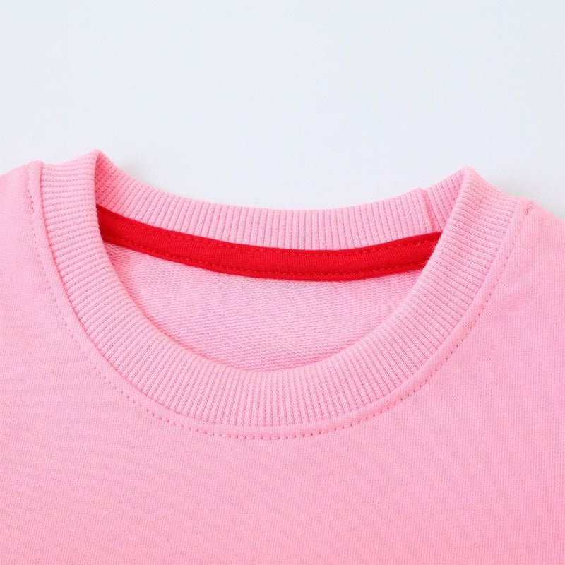 Sprinkle some magic into her wardrobe with this enchanting pink sweatshirt! Featuring a delightful rainbow and unicorn embroidery design, it's perfect for little dreamers who love all things whimsical. Crafted for comfort and durability, this cozy sweatshirt is ideal for playdates, school days, or snuggling up at home. The vibrant embroidered details add personality and charm that'll make her smile every time she puts it on. A must-have piece for any unicorn-loving kid!