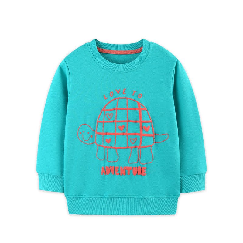 Keep your little one cozy and cheerful with this playful blue sweatshirt featuring an adorable turtle print. Designed for toddler and kid girls, it combines comfort and fun in every stitch. Perfect for everyday adventures, this soft sweatshirt adds a splash of color and whimsy to their outfit while keeping them warm and snug.