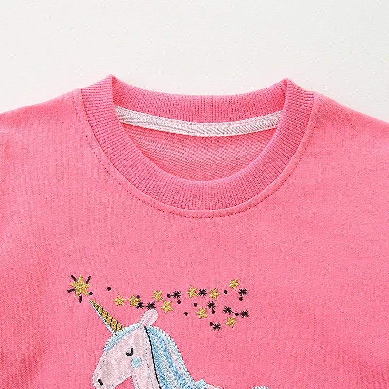 Toddler/Kid Girl Unicorn Embroidery Design Sweatshirt and Pants Set