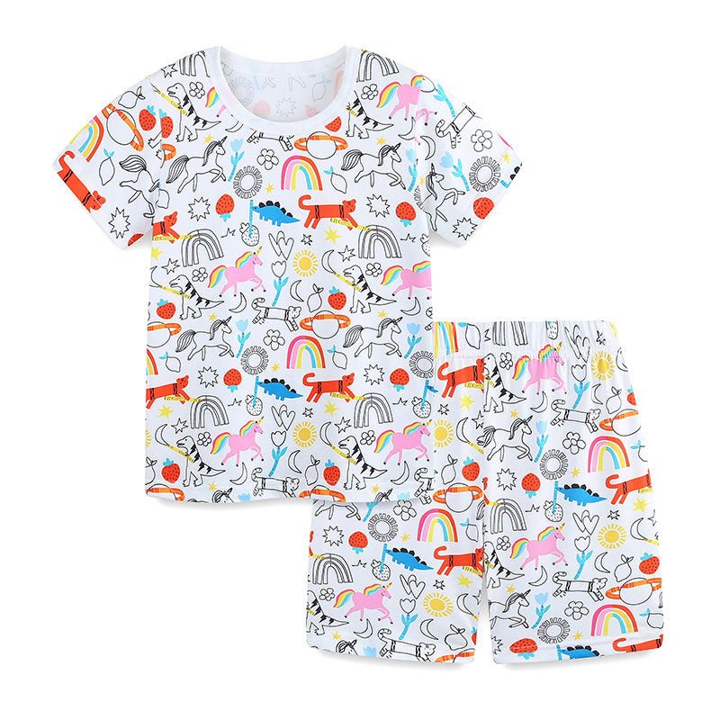 This adorable set features a playful allover cartoon animal print on a soft top paired with comfy shorts, perfect for your little girl's everyday adventures. Designed for toddlers and kids, it offers easy movement and cheerful style to brighten up any day.