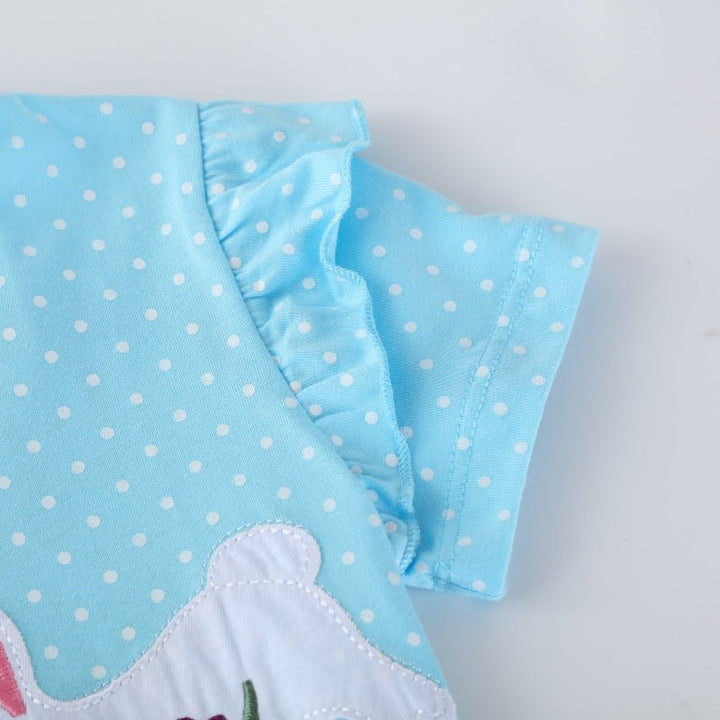 This adorable blue dress features a charming rabbit design that little girls will love! Perfect for playdates, parties, or everyday adventures, it combines comfort with cuteness. The playful pattern brings smiles while the practical design keeps your little one looking stylish all day long. Watch her hop with joy in this delightful dress!