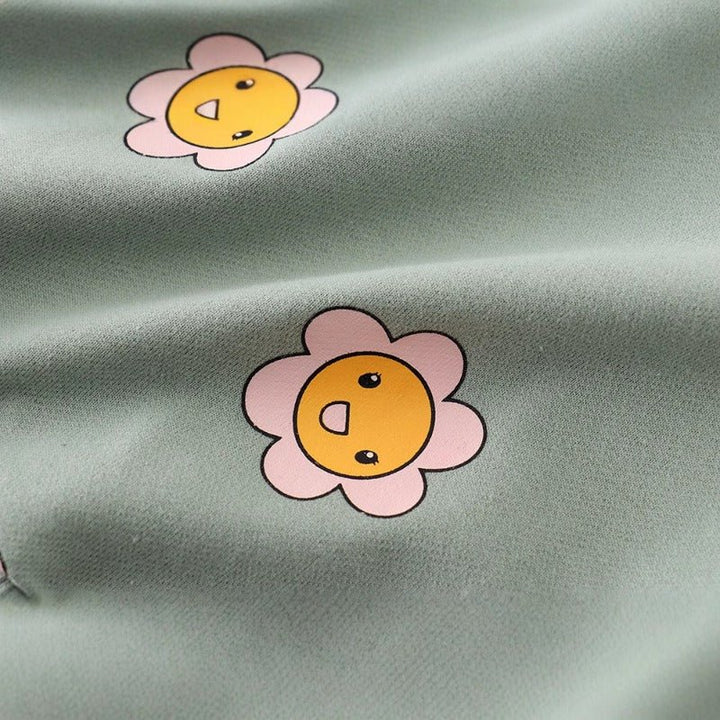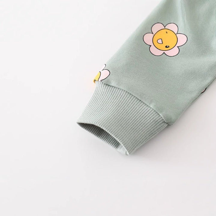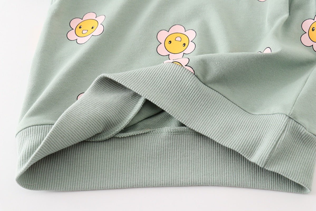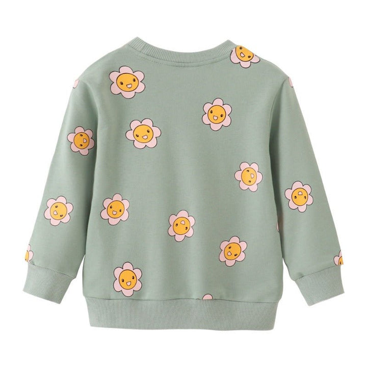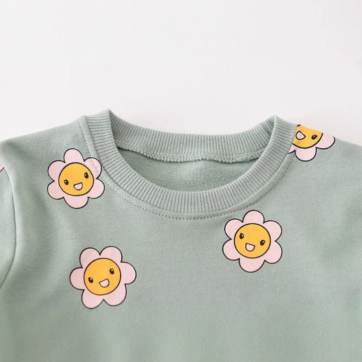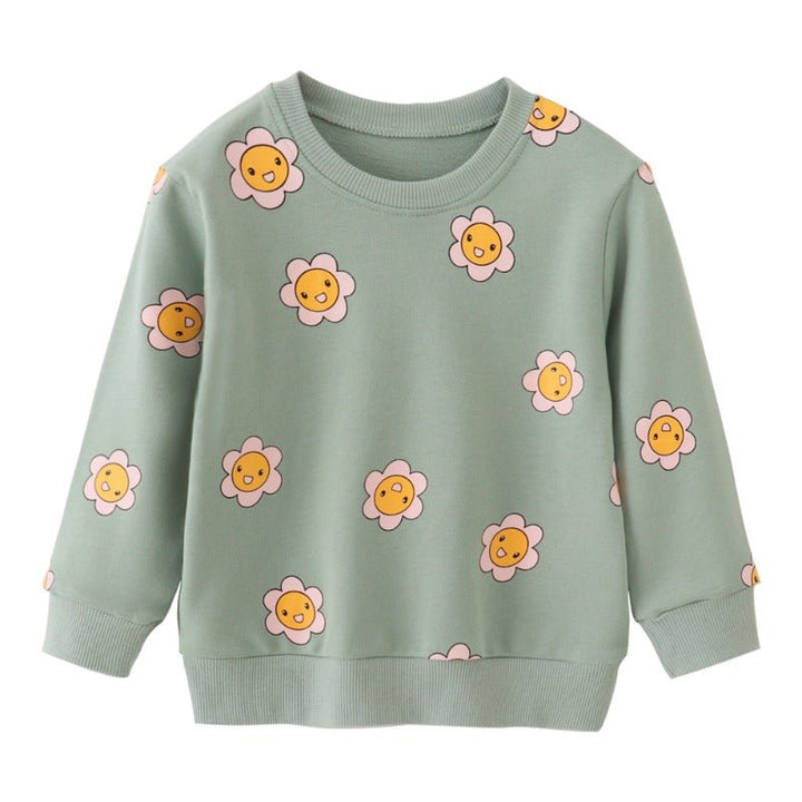 Brighten your little one's wardrobe with this cheerful sweatshirt featuring adorable cartoon sunflowers! Perfect for playdates, school days, or cozy afternoons, this comfy piece combines soft fabric with a vibrant, eye-catching design that kids love. The playful sunflower print adds personality and charm to any outfit, making it an instant favorite. Ideal for layering during cooler months, this sweatshirt keeps her warm while letting her style shine through. A delightful choice for any girl who loves fun, colorful fashion!