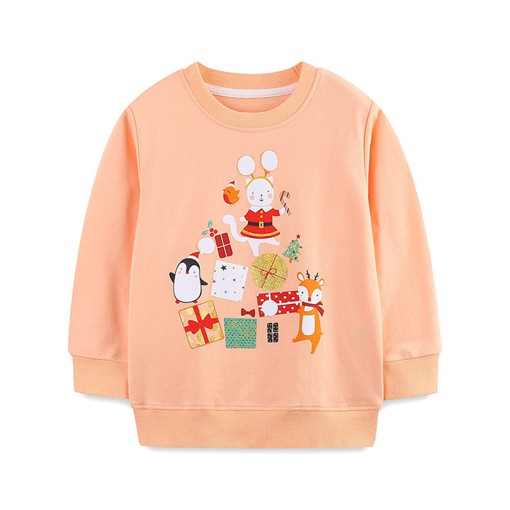 Get your little one holiday-ready with this playful Christmas sweatshirt, featuring fun cartoon designs perfect for toddlers and kids. Soft and cozy, it keeps your child warm during festive celebrations while adding a touch of cheerful charm to their outfit. Ideal for spreading holiday joy in style!