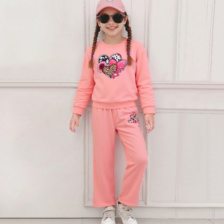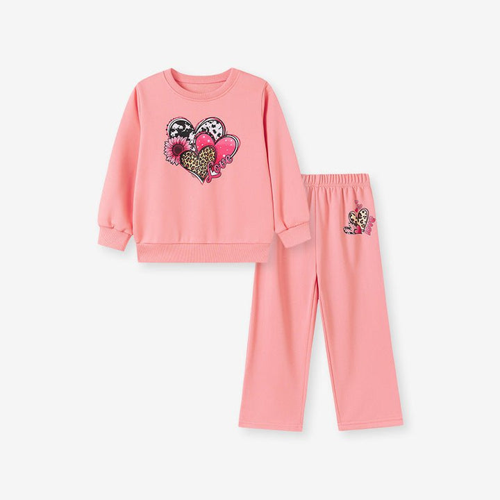 Toddler/Kid Girl's Pink Heart Design Sweatshirt with Pants Set