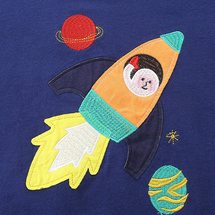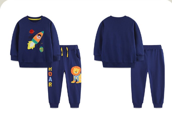 Toddler/Kid Lion and Rocket Embroidery Design Sweatshirt and Pants Set