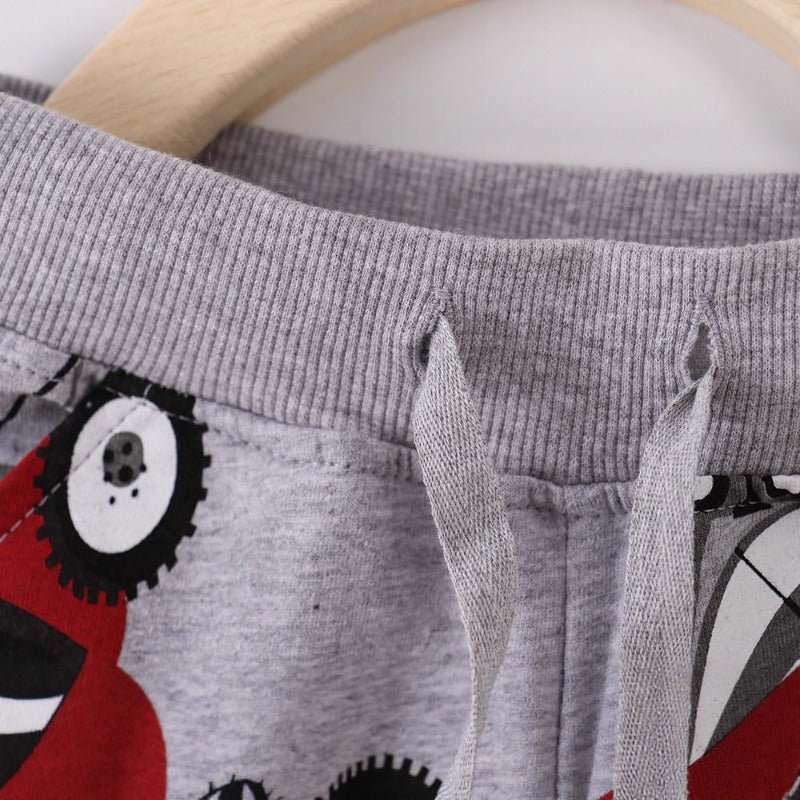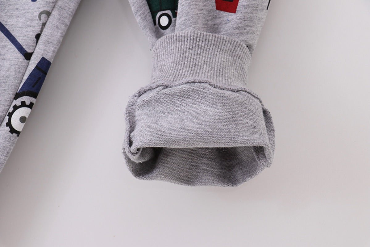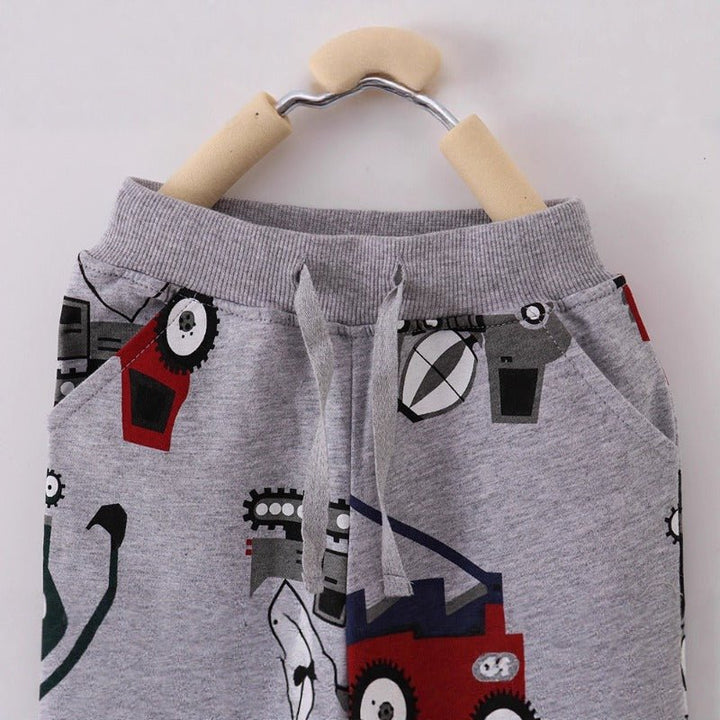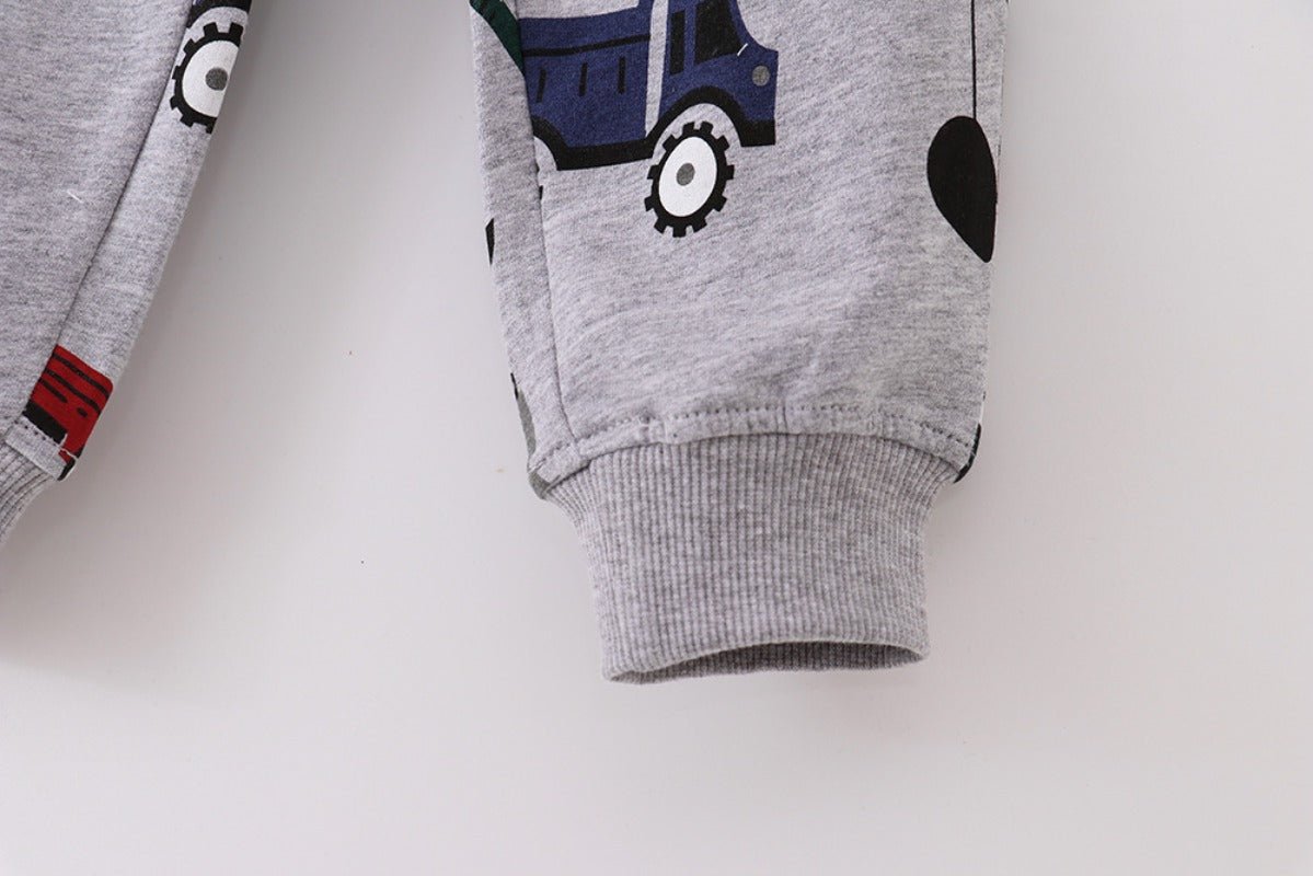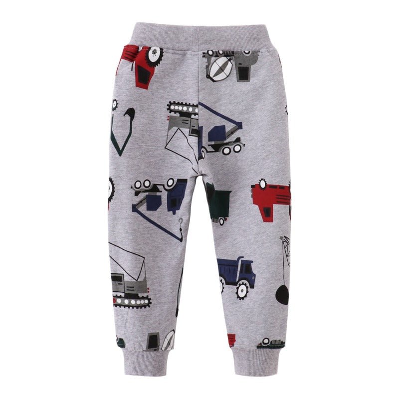 Dig into playtime with these fun excavator print pants! Featuring an all-over construction vehicle design in cool gray, these comfy pants keep little builders entertained from sunrise to sunset. Perfect for kids who love trucks and machines, the playful pattern sparks imagination during every adventure. Soft, durable fabric ensures all-day comfort whether they're playing in the yard or heading to school.