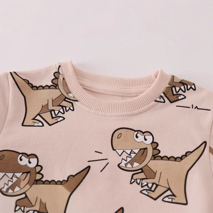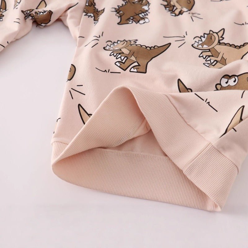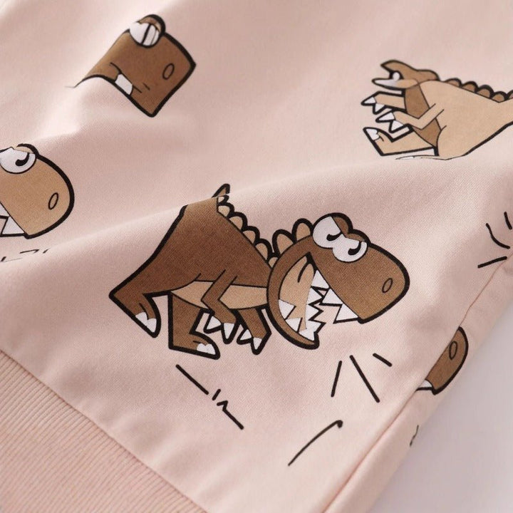 Let your little one roar with style in this adorable brown sweatshirt featuring cheerful cartoon dinosaurs! Perfect for dino-loving kids, this cozy pullover combines comfort with fun prehistoric vibes. The playful print brings imagination to life, making it ideal for everyday adventures, playdates, or casual outings. Soft and durable, it's designed to keep up with active toddlers and kids while keeping them warm and happy.