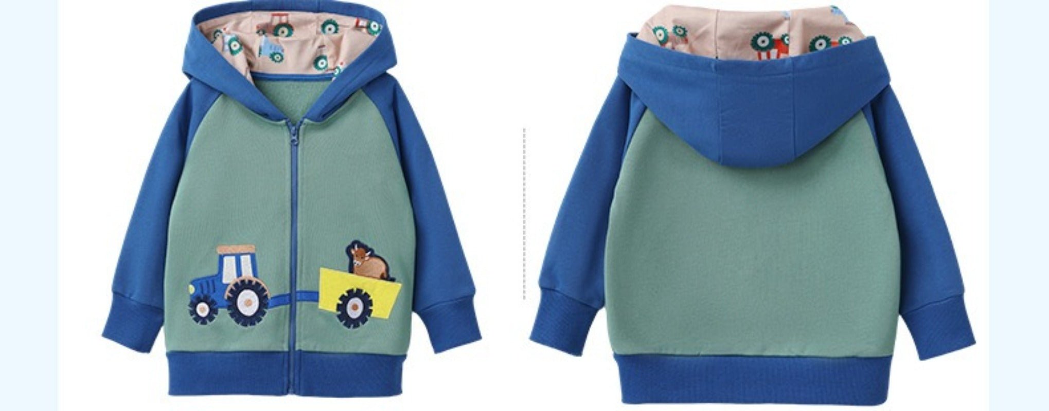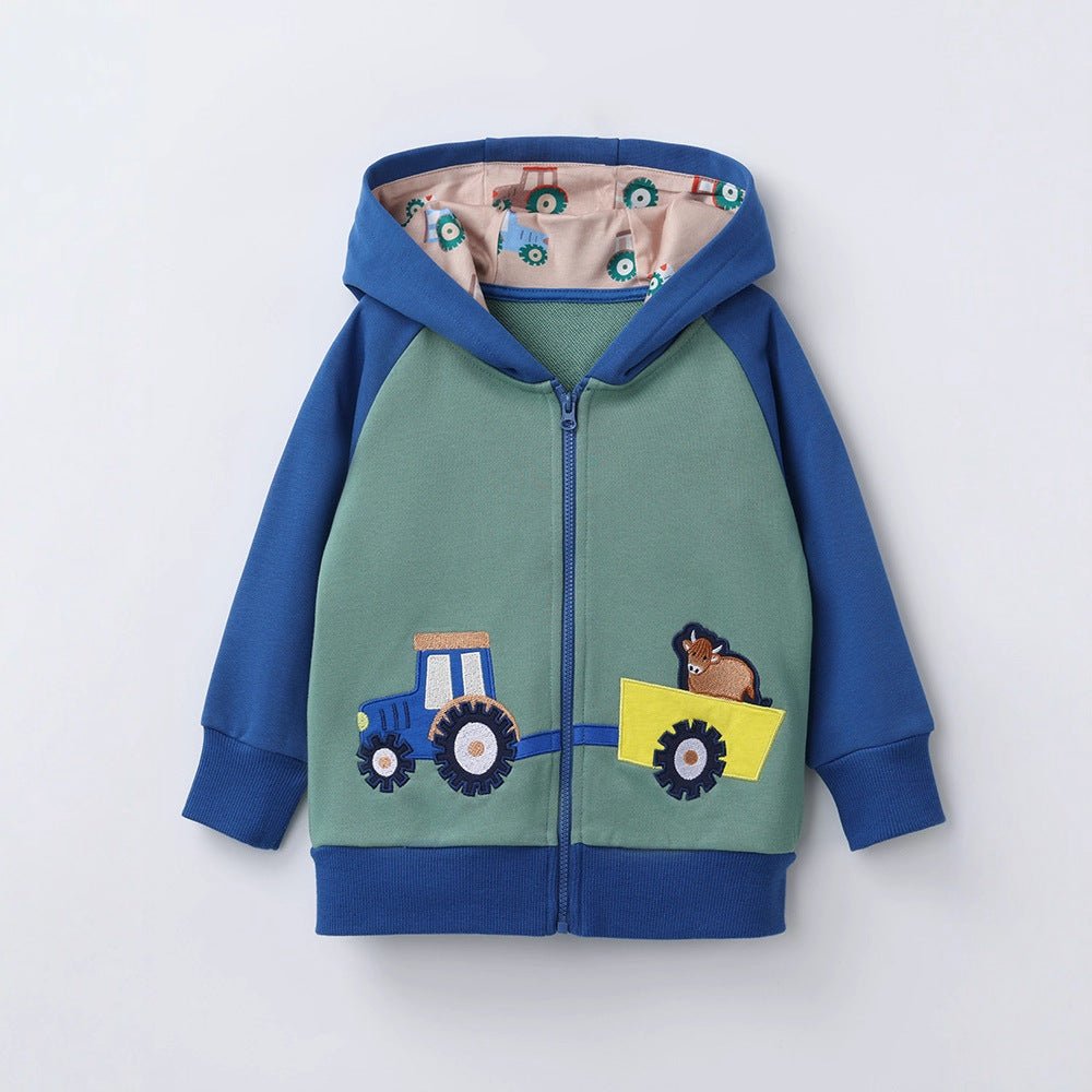 Toddler/Kid's Cartoon Cattle and Vehicle Embroidery Design Jacket